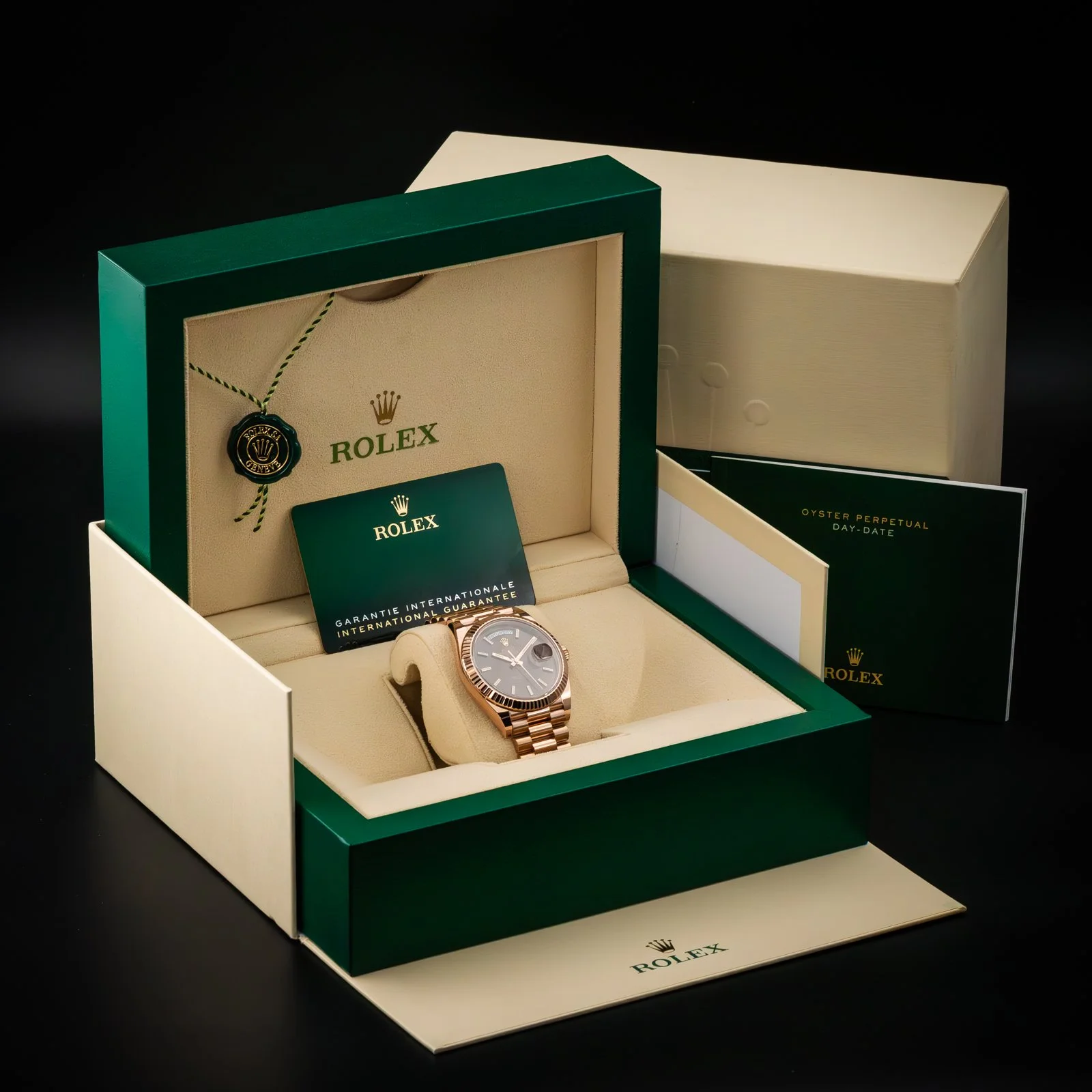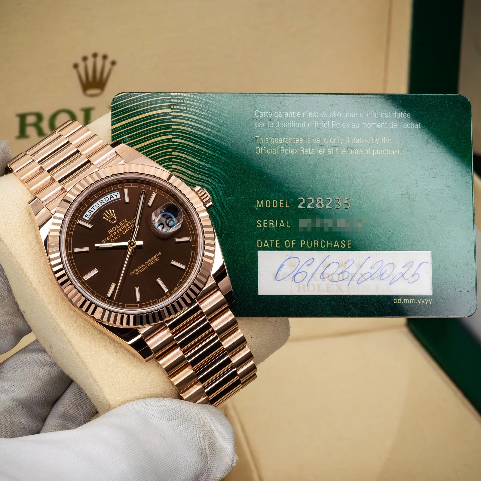 Rolex Day-Date 40 Everose Gold Chocolate Dial 228235 Complete Set